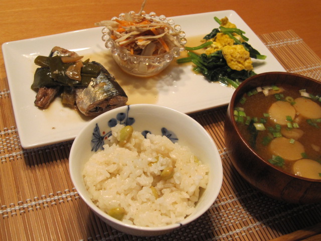 秋刀魚のやわらか煮・牛蒡サラダ・ほうれん草ソテー