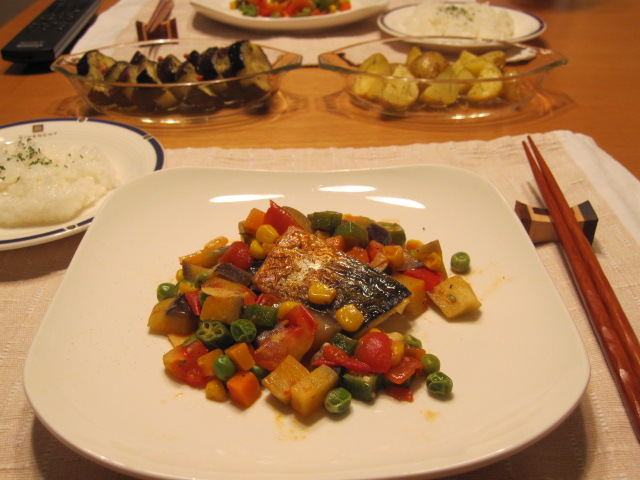 トマト・茄子・オクラ・ミックスベジタブルのソース。