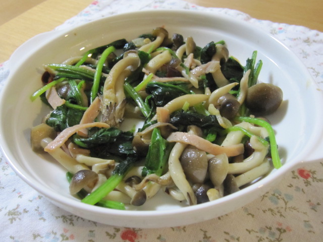 ほうれん草・しめじ・ハムのソテー。