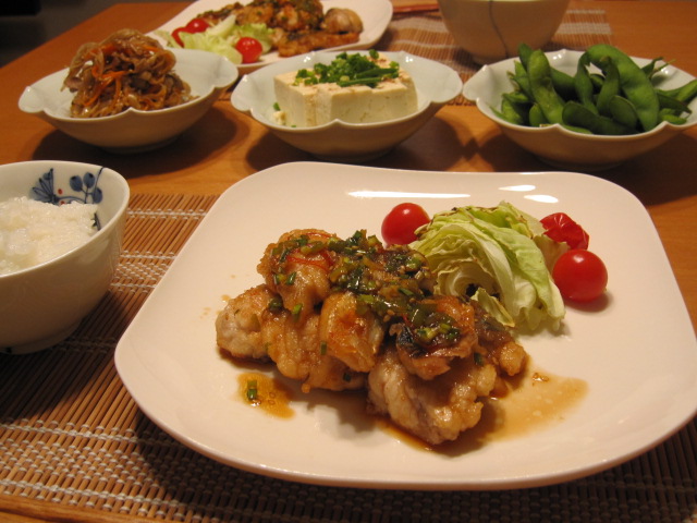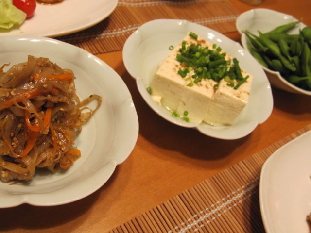 普通に牛蒡のきんぴらと豆腐、いつもの枝豆。