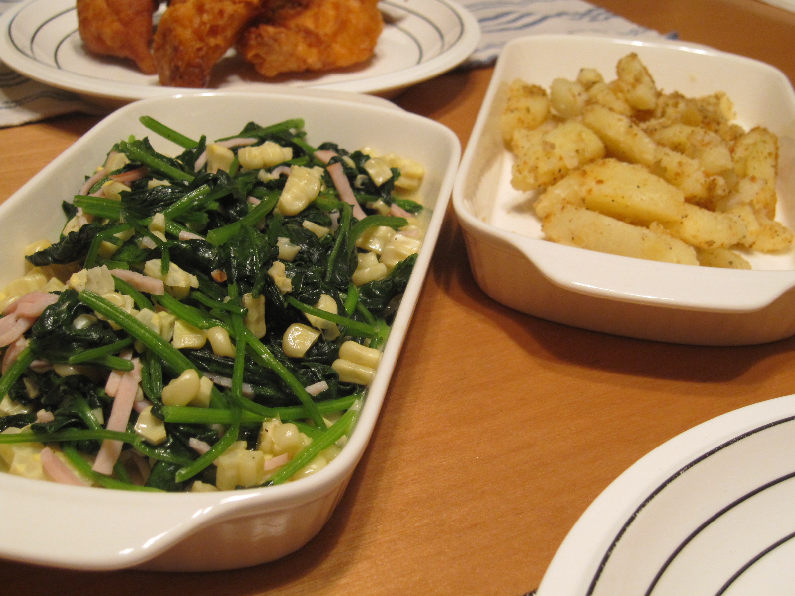 ガスト風のほうれん草ソテーと粉ふき芋。