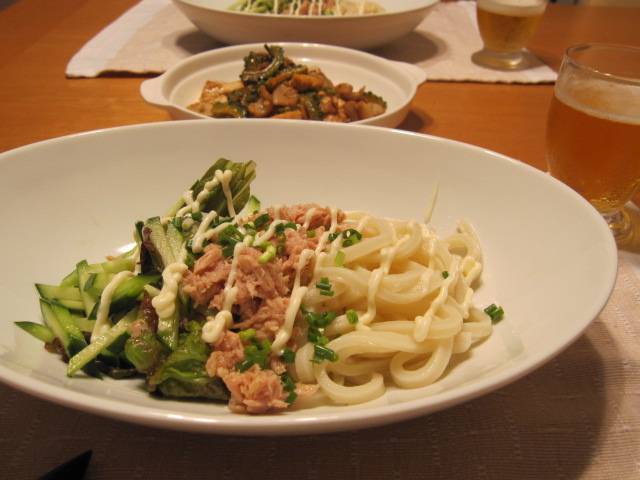 帰って来てからサラダうどん作成。