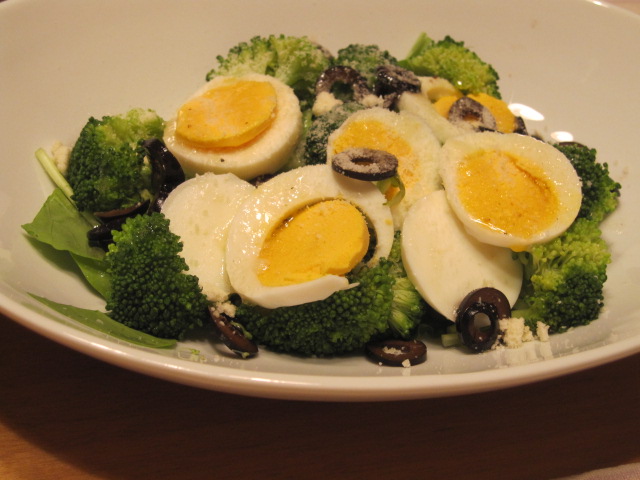 サラダはルッコラ・ブロッコリ・卵・黒オリーブ。