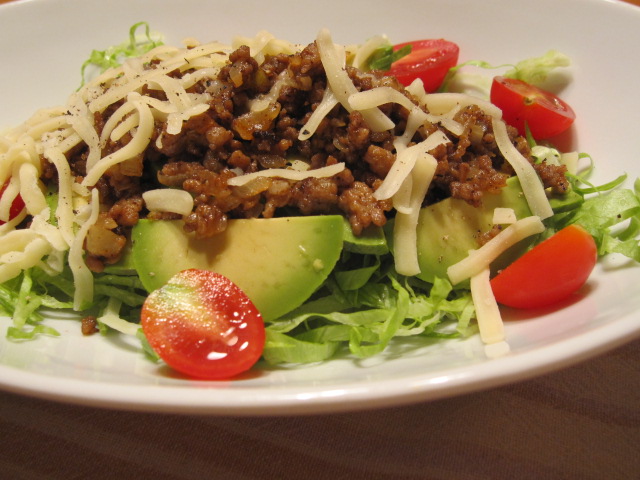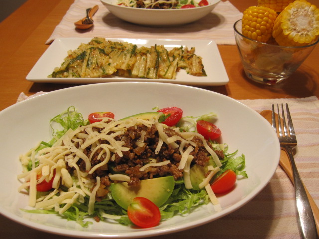 シーズニングミックスで炒めた挽肉をのせるだけ。