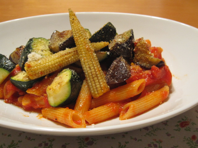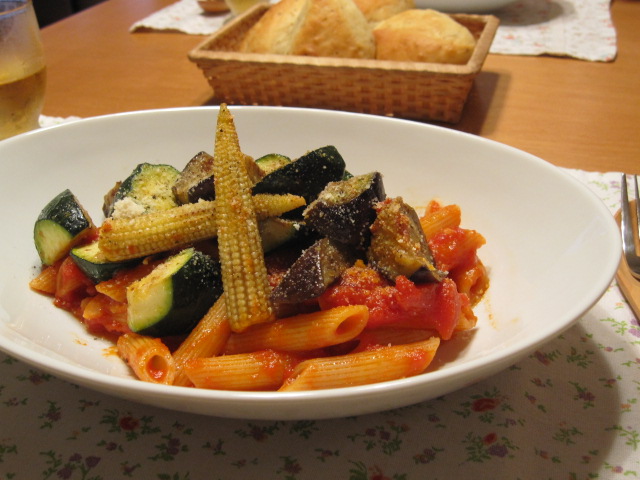 ごろごろ焼き野菜のトマトペンネ