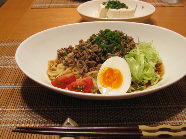 本当はつけ麺らしい冷やし麺、面倒なのでかけちゃいます。