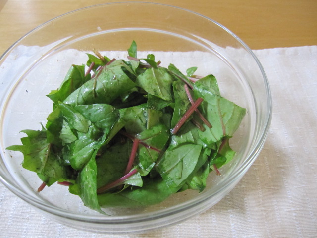 赤軸ほうれんそうはバルサミコ酢とオリーブ油で。
