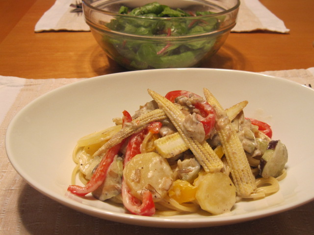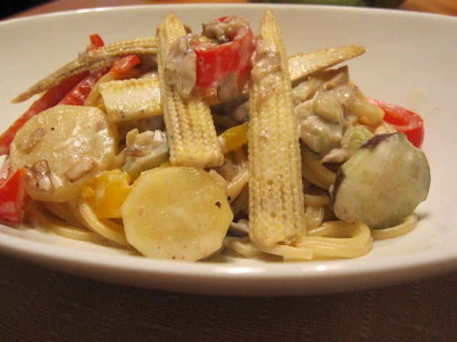 パプリカ・茄子・じゃがいも・ヤングコーン入り。