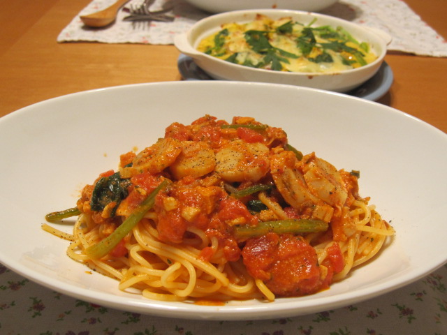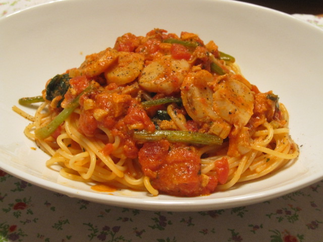 ホタテのトマトクリームパスタ