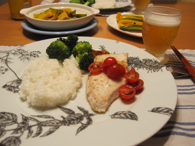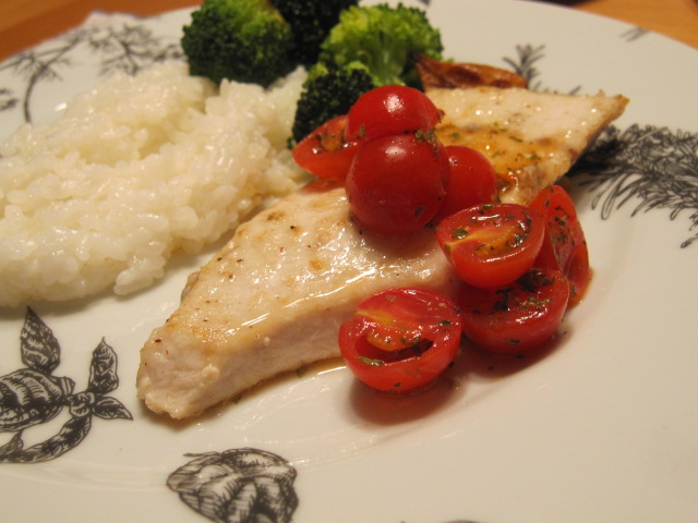 カジキは塩胡椒でソテーして、トマトのソースで。