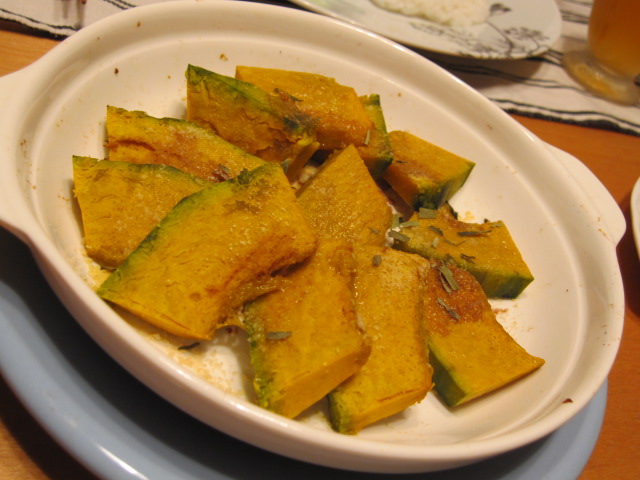 かぼちゃはトースターでチンしてバルサミコ酢をかけました。