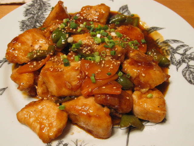黒酢のタレでからめたのは、豚肉ではなく鶏肉。