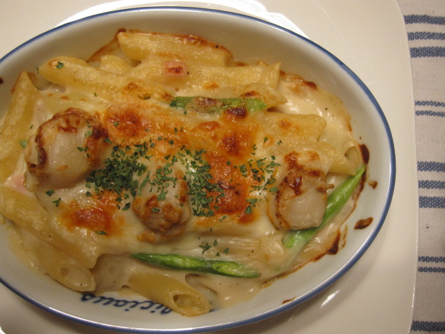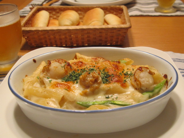 ホワイトソースで濃厚、ペンネも入って高カロリー。