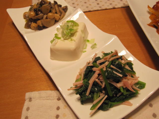 ほうれん草・冷奴・きのこのマリネ
