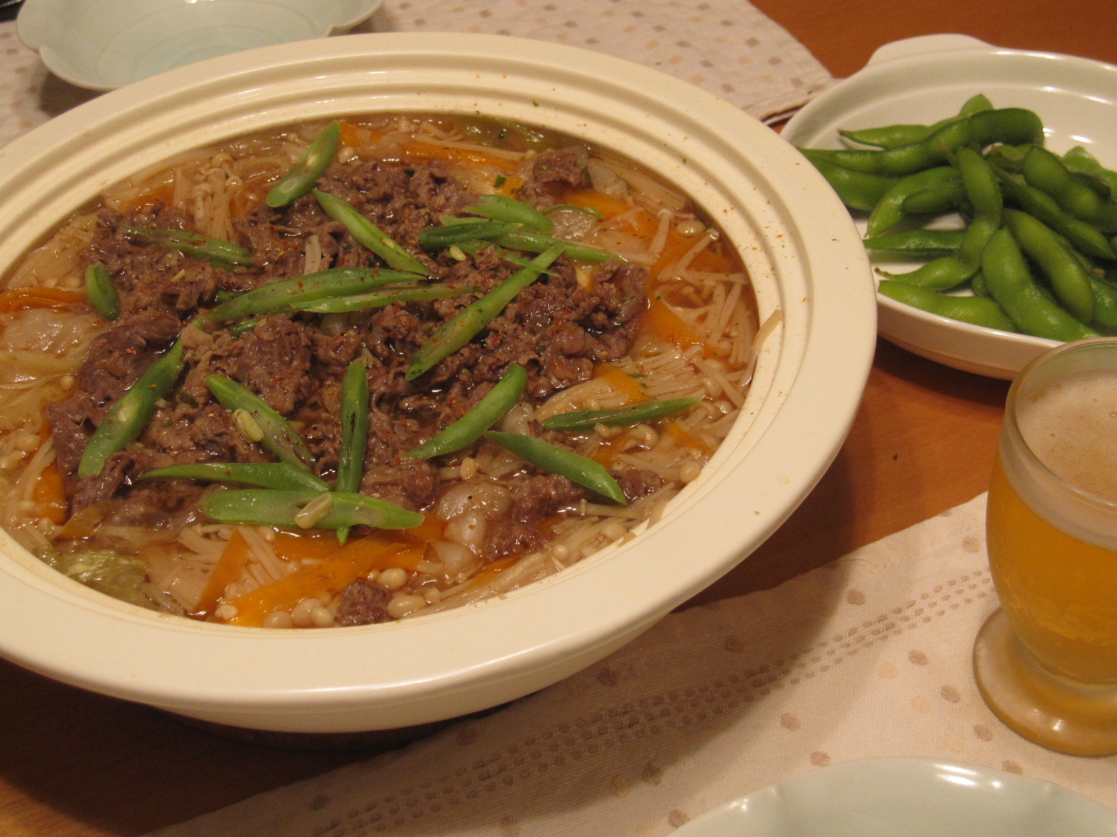 キャベツたっぷり、お豆腐は1丁入れて、牛肉は