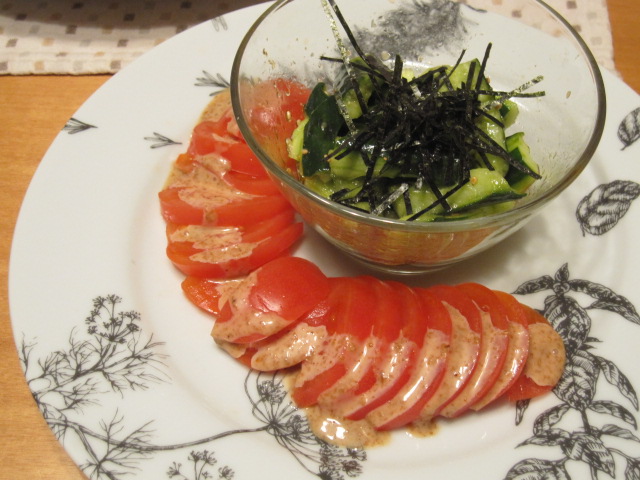 トマトはただ切っただけ・・・ごまドレッシングで。