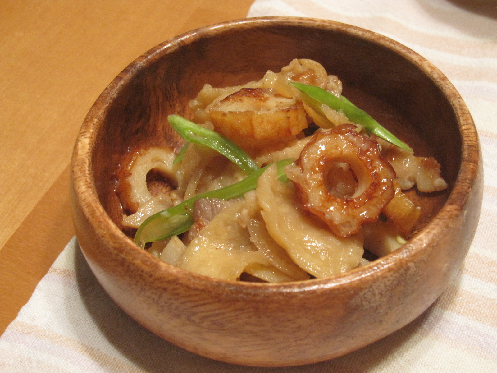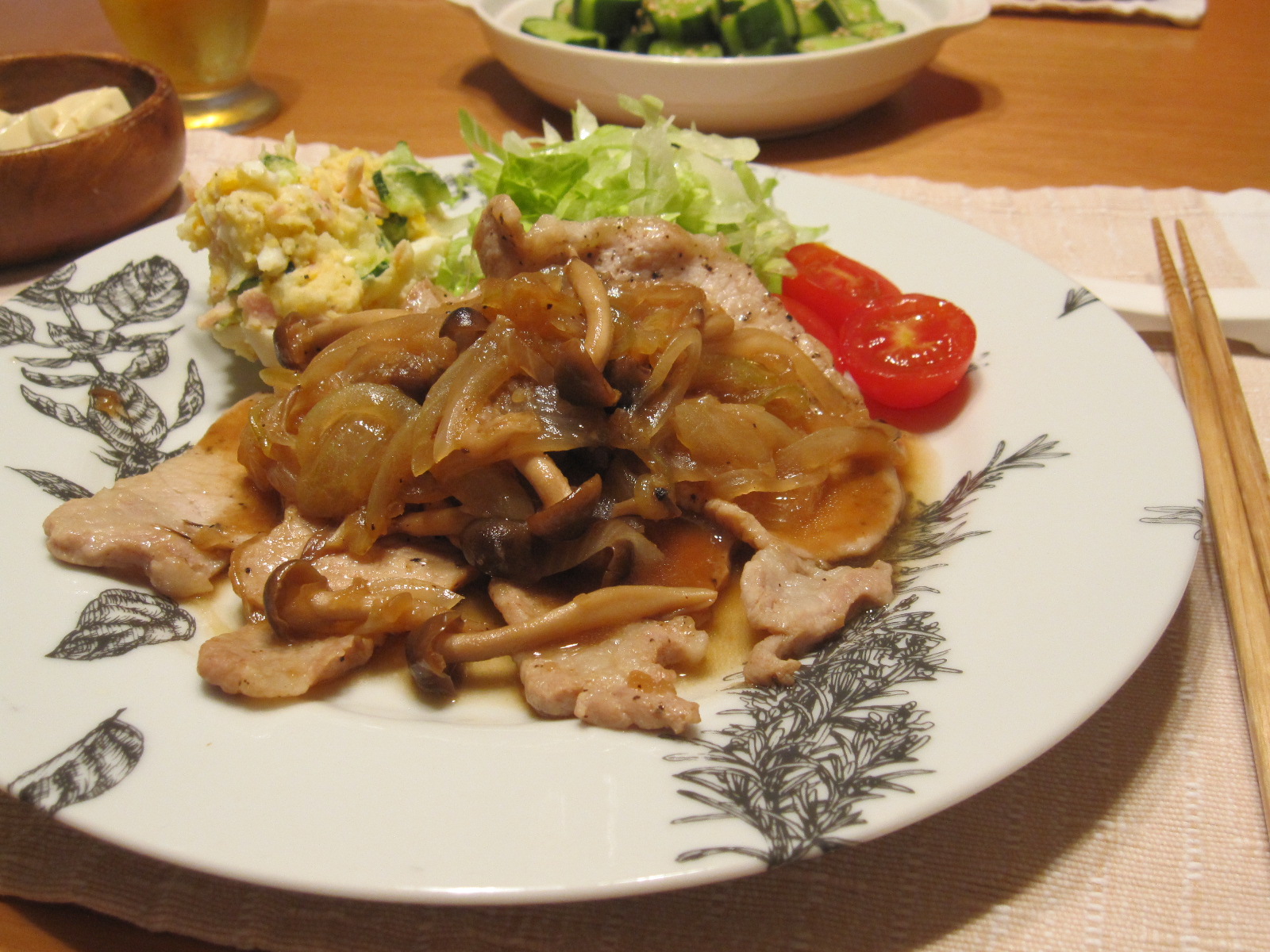脂身の少ない肩ロース肉、たっぷり玉葱としめじも。