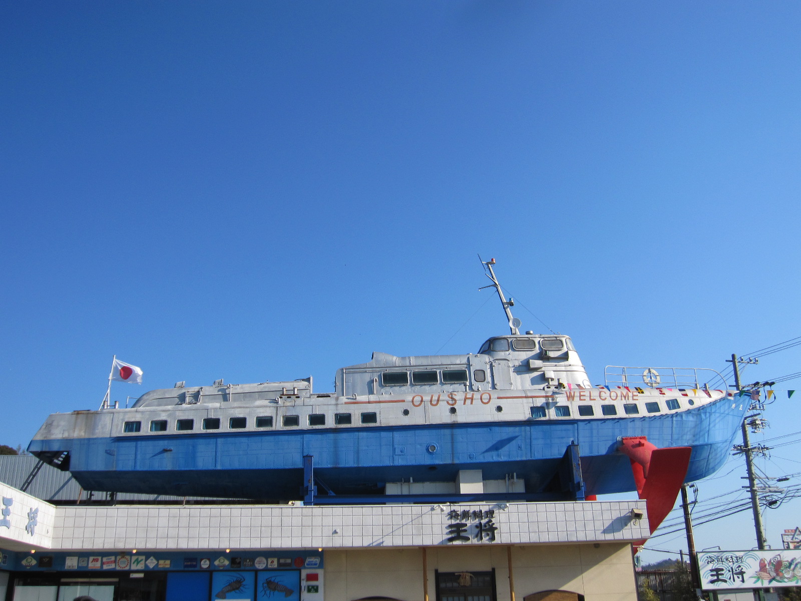 船が建物の上に鎮座した海鮮系のお土産屋さん。