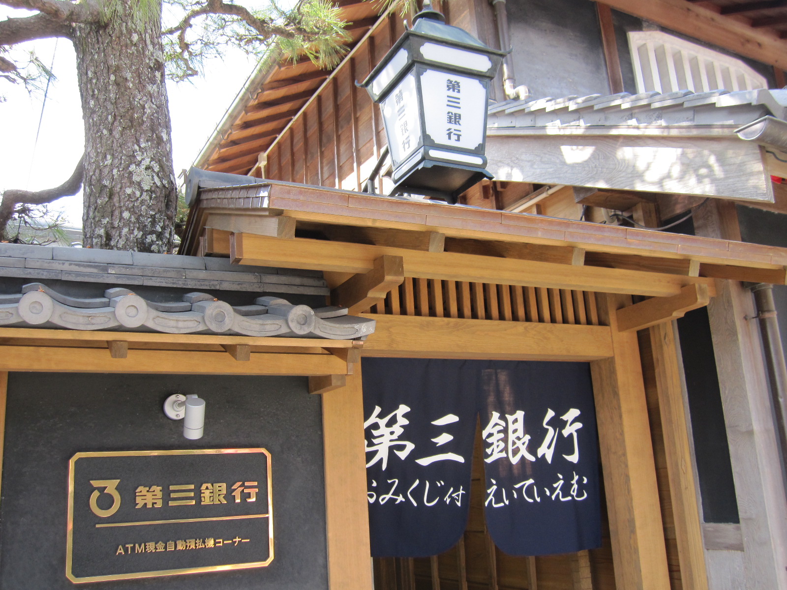 景観に配慮された銀行。しかもATMはおみくじ付き!