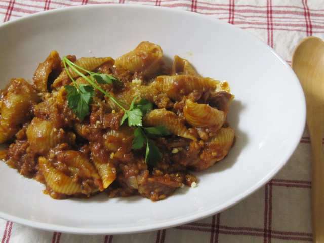 冷凍庫に眠るいつぞやのキーマカレーを温めて、パスタで。