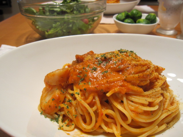 ホタテのトマトクリームパスタ