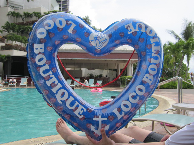 ラブリー過ぎて衝動買いしたハート型の浮輪、14ドル。