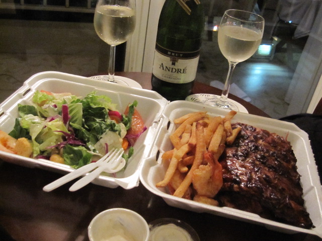 ポークリブとエビとポテトのがっつりフードと念願のサラダ。