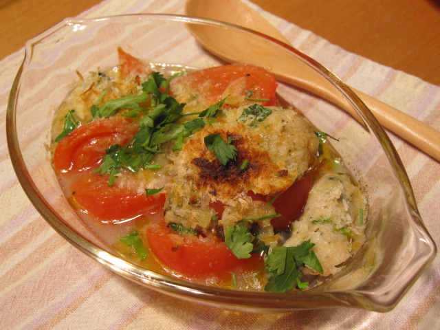 2.1を器に盛りパン粉をかけて、オーブントースターで12~13分焼く。