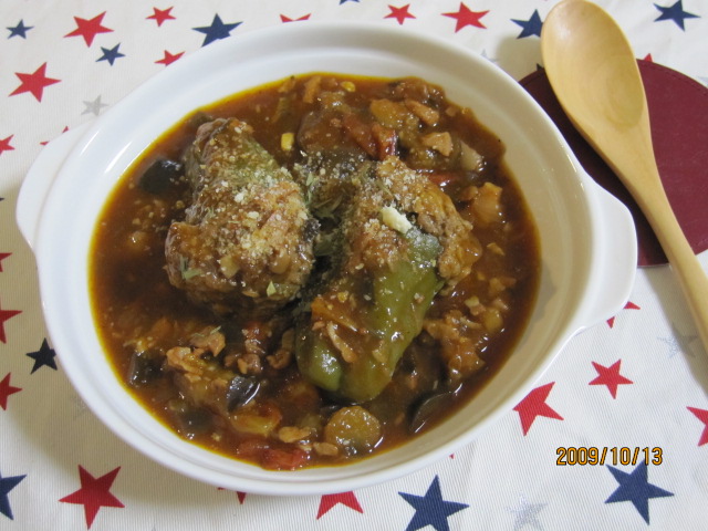 1.◎をよく混ぜ合わせ、ピーマンに詰める。