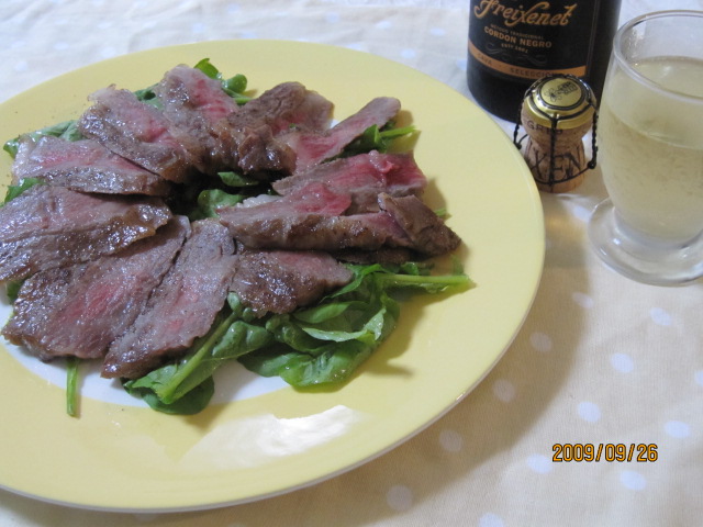 バルサミコ風味のルッコラと一緒に食せばシャンパンも進みます。