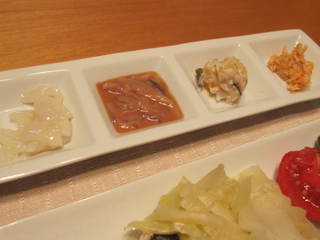 イカの白造り・イカの赤造り・山葵漬け・鮭茶漬け。