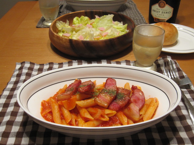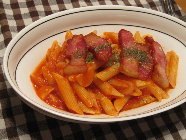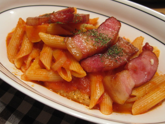 厚切りベーコン後乗せのアマトリチャーナ。