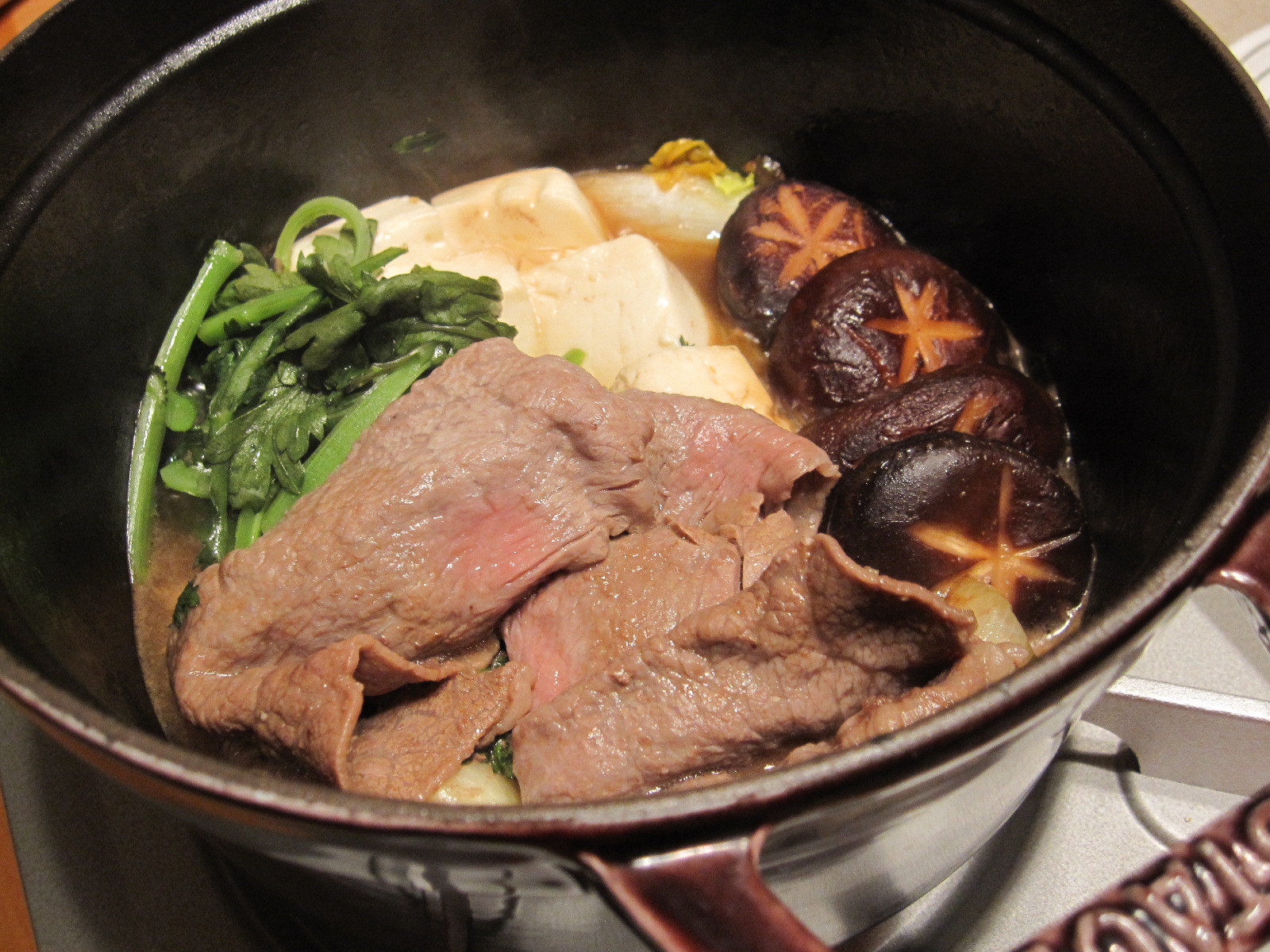 我が家にはすき焼き鍋がないのでストウブで。