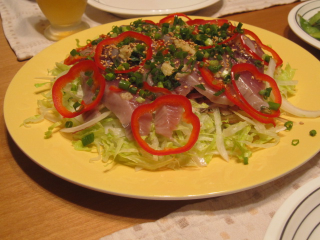 生カツオがお安かったので、モリモリ野菜と一緒に。