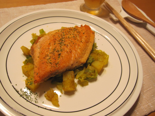 サーモンのコーングリッツソテー