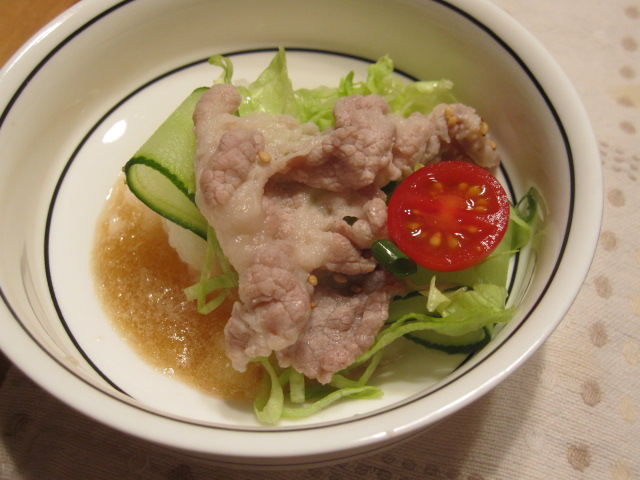 塩麹とお酒で下味付けておいて、それからしゃぶしゃぶしました。