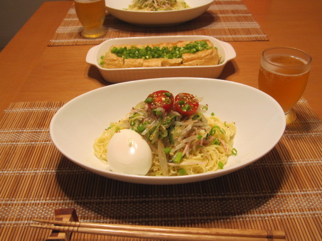 もやし・胡瓜・ハムはあらかじめうまたれで和えて、上に乗っけました。