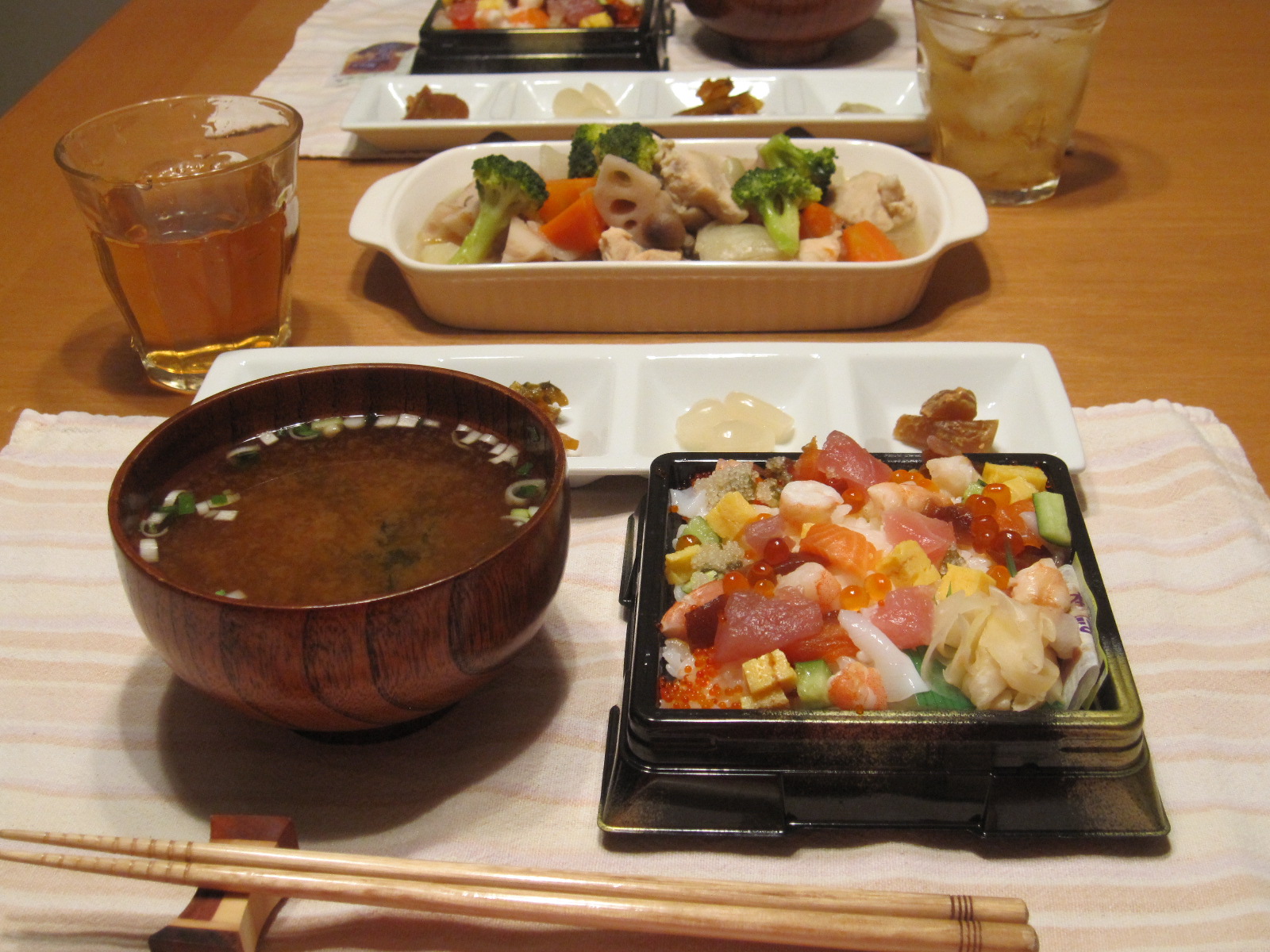 ちゃんとご飯を食べようと、魚を買うつもりが、ちらし寿司買っちゃった。