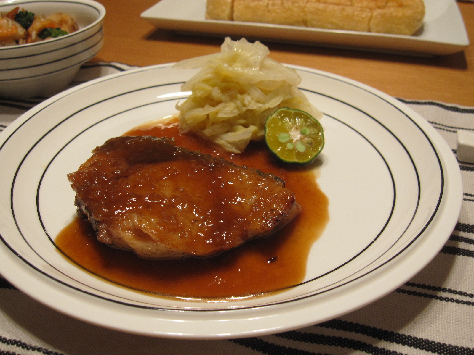 ブリの切り身がお安かったので、照り焼きに。