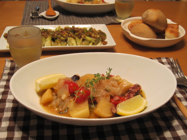 蛸とじゃがいもをストウブで蒸し煮にしました。